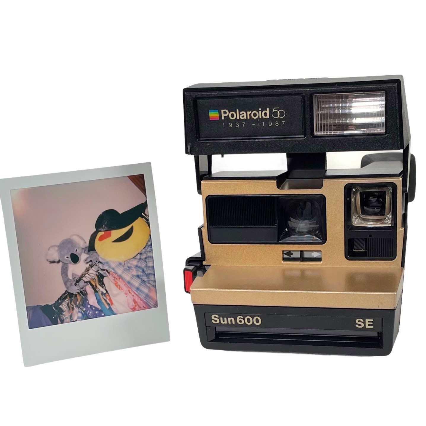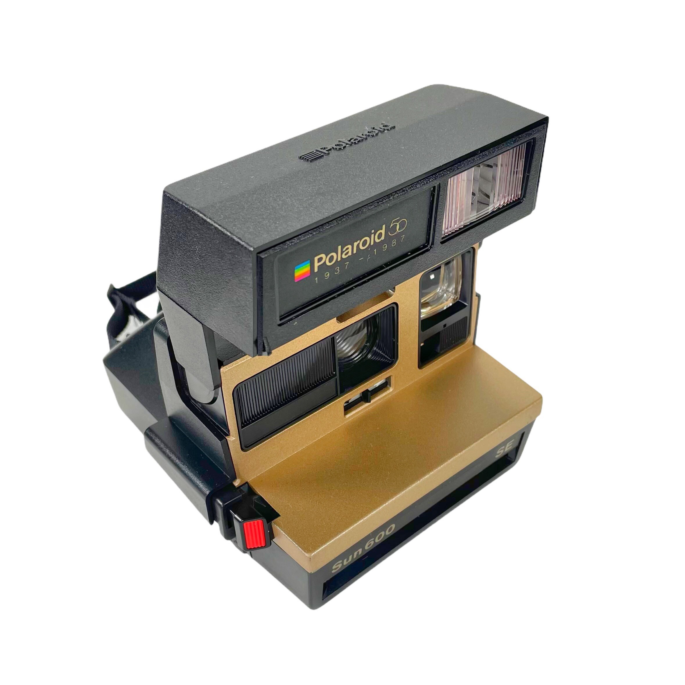 Polaroid produced a few special event cameras. They have the same features as their regular cameras but came with unique labeling and coloring. This is one of the two designs Polaroid made to celebrate their 50th Anniversary. It has Anniversary labeling on the panel next to the flash, a gold face and gold lettering on the print exit (Sun 600 SE). I have fully disassembled the camera, cleaned, tested, adjusted and then did a final check of all features upon assembly. A fun camera for a collector, but also ready to get out and take pictures with.