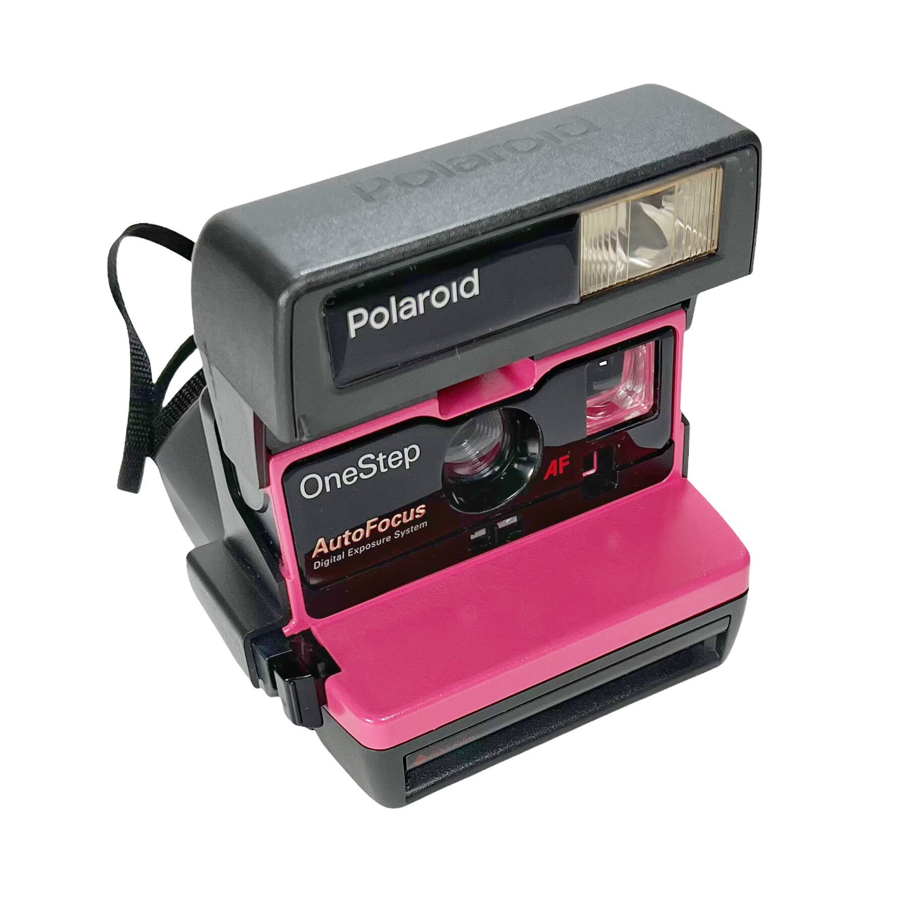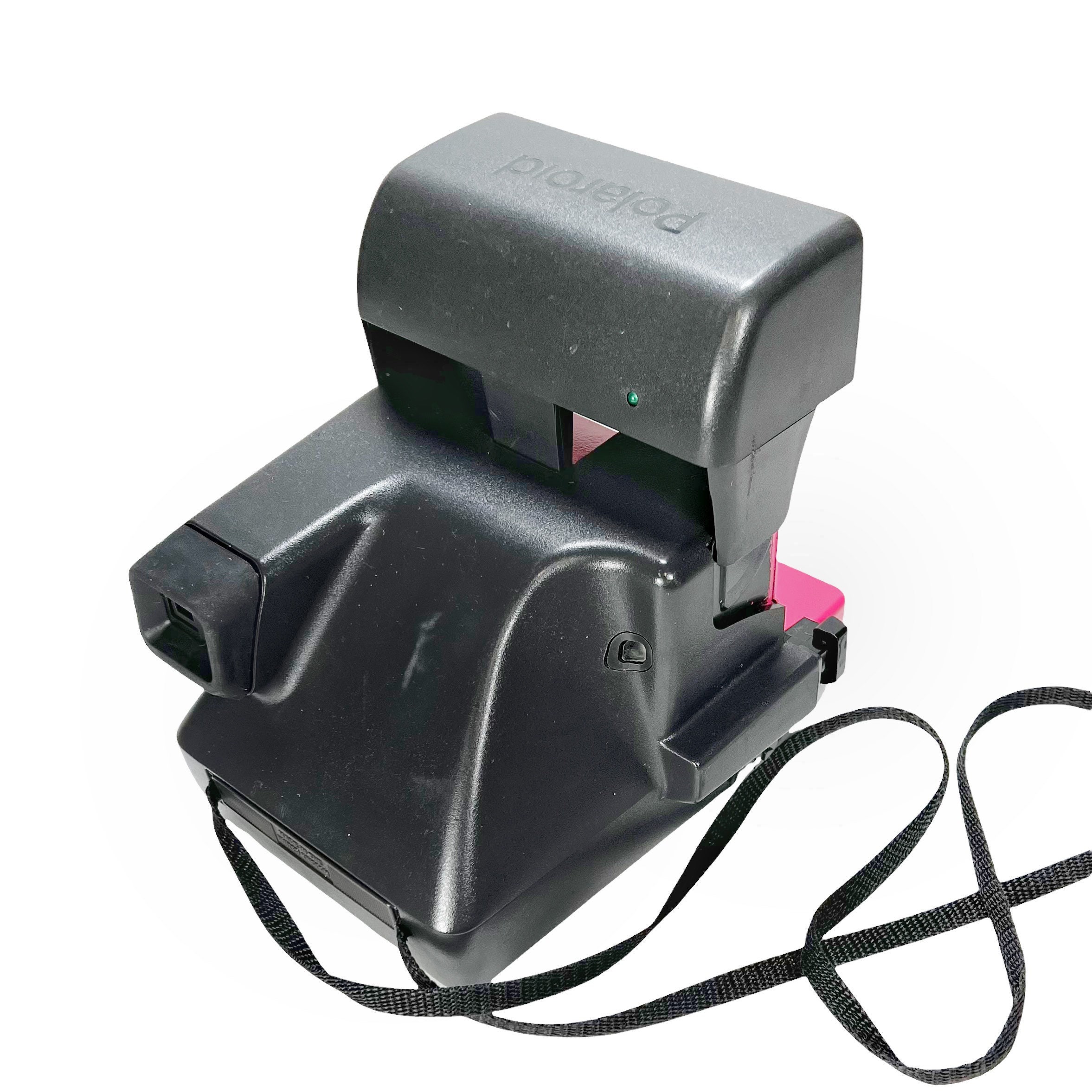 There are several different types of Polaroid 600 OneStep cameras. Most people think of the AutoFocus version as having the big gold Sonar focus on the front. The model here is a lesser known version that uses light from the camera flash bouncing off the object your taking a photo of, back to the camera to focus. Another great Polaroid design.