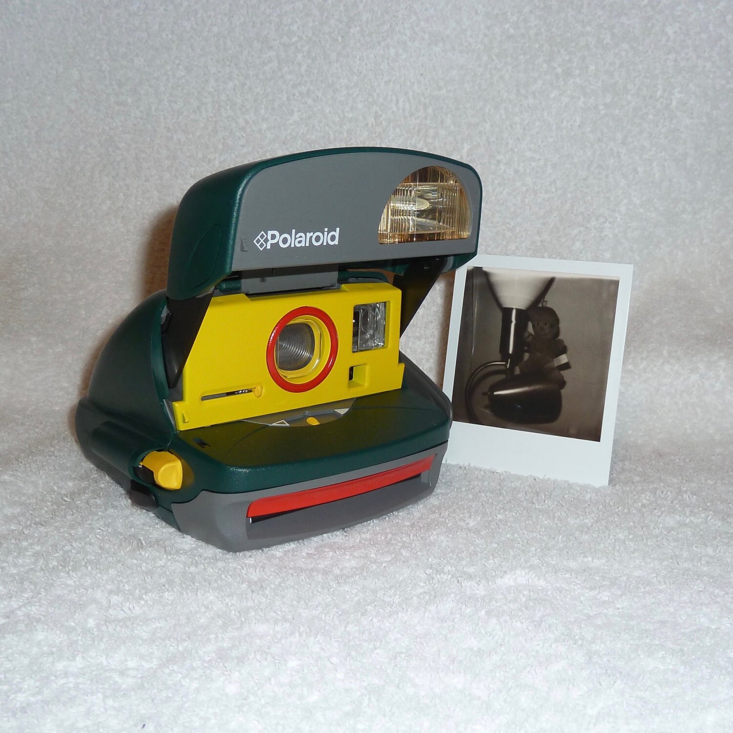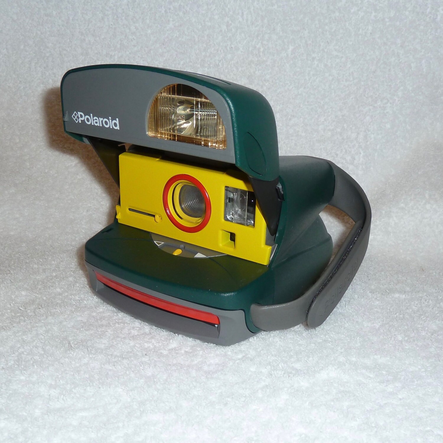 While extremely well designed, the earlier Polaroid cameras where very square cornered. That wasn't the case with the One Step 600 'Express' models. This hunter green Express 600 is an all-in-one, so snapping a photo doesn't require any extra attachments or set up time. The Yellow and Red is a bit of fun upcycling I did while I had the camera apart.