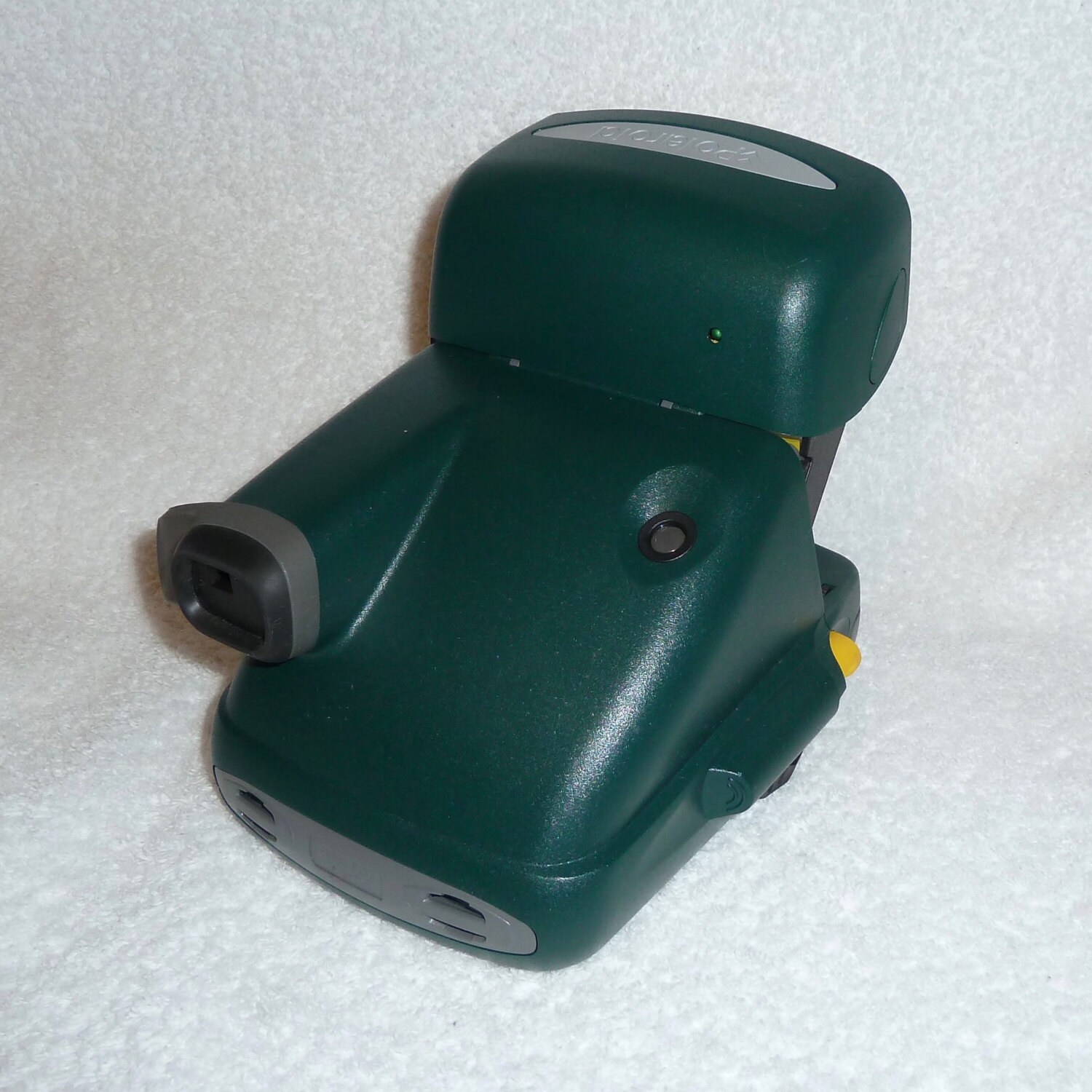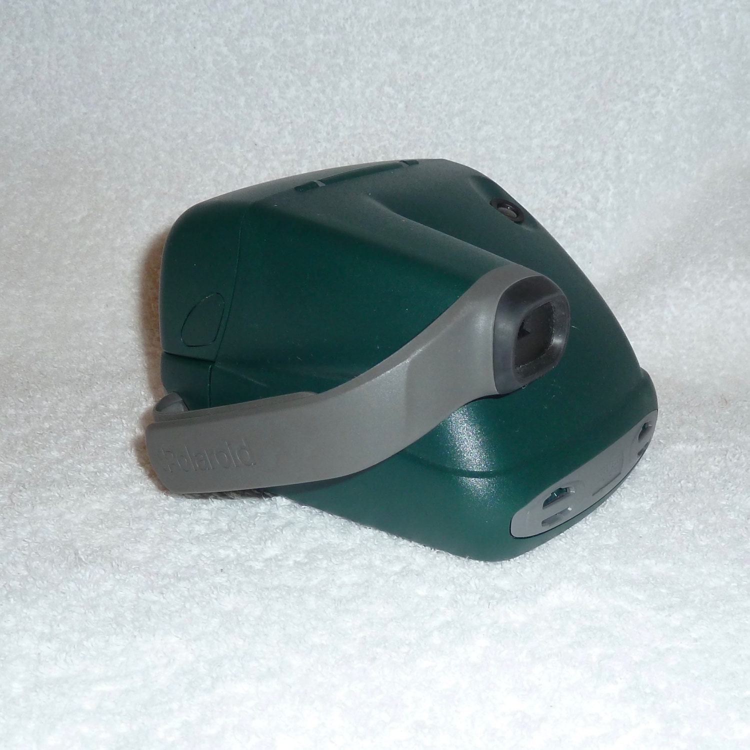 The nicely rounded corners of this camera and built in adjustable side handle makes it fun to take with you. The flash has a charged green indicator on top of the camera. The battery in the film cartridge powers both the camera motors and the flash. This mean that there is no batteries to buy or have battery leaking issues.