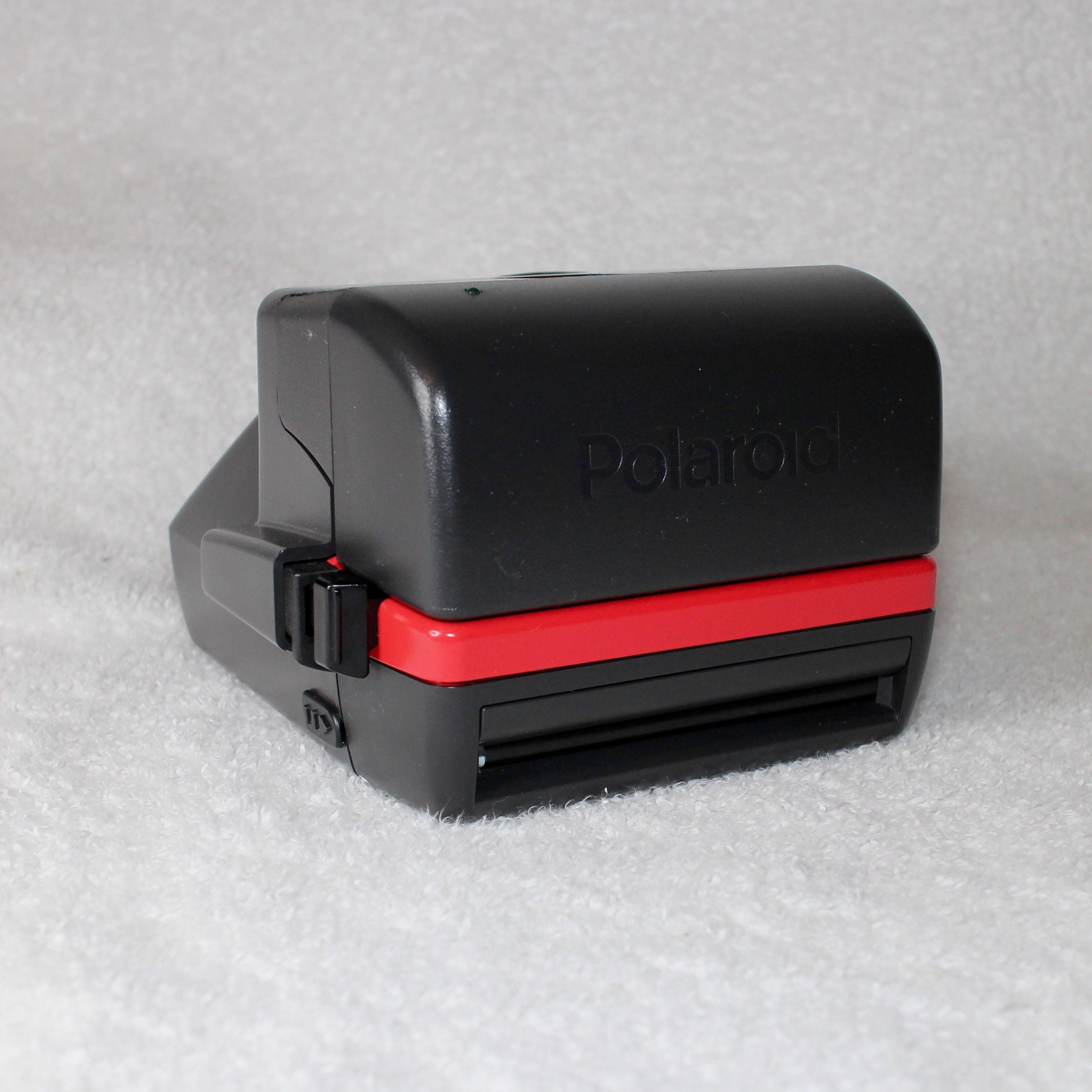 This is a vintage Polaroid 600 OneStep. Opening the camera reveals the lens, flash, close-up lens and light/dark adjustment slider. I cleaned the lenses and viewfinder, cleared out the internal workings of the vintage dust, tested and replaced internal mechanical components as needed, cleaned the rollers, and then updated the face of the camera with Red and a Brushed Silver.