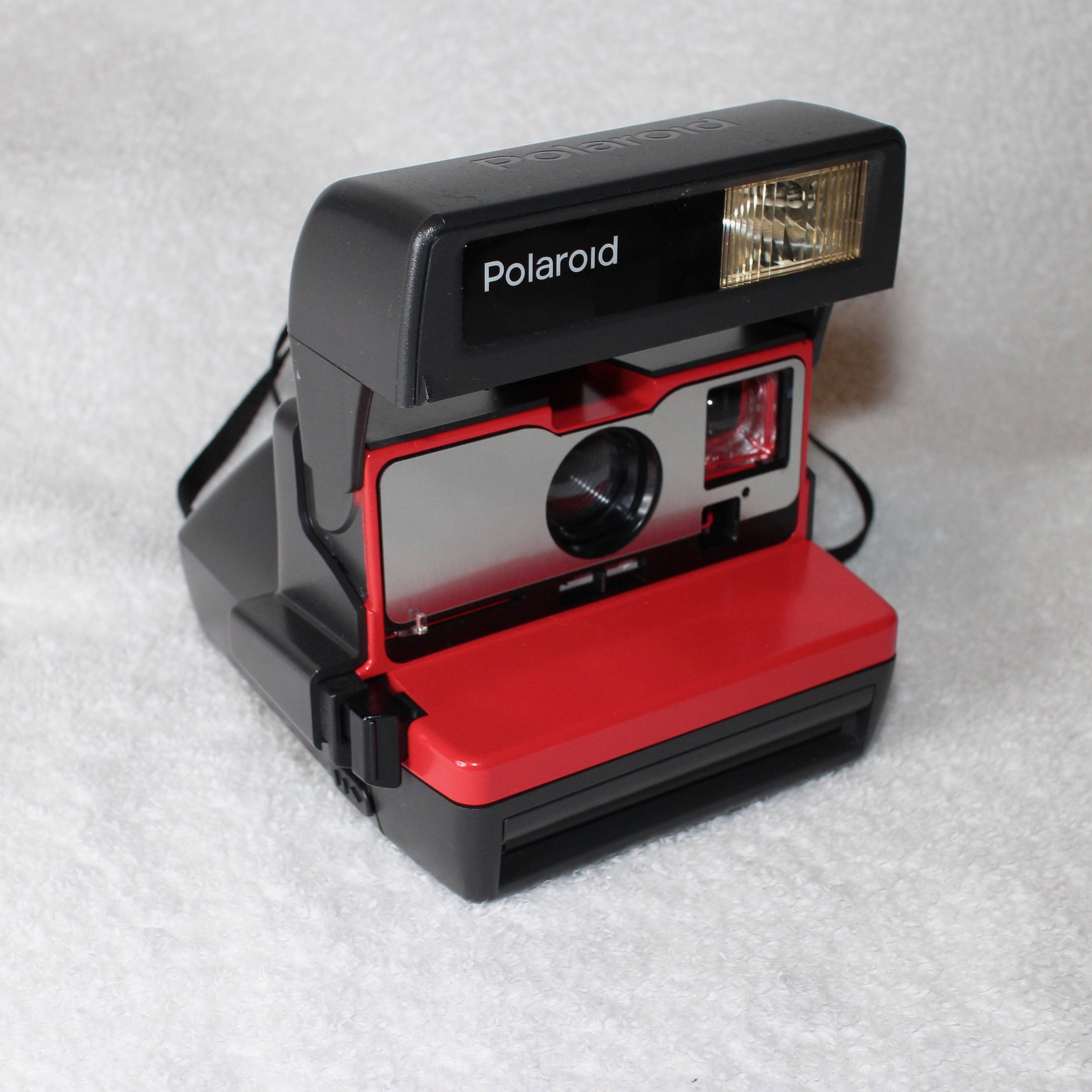 After cleaning, I tested the camera with new Impossible Project 600 film to make sure everything is working as expected. There is new film available from The Impossible Project in black-and-white or color prints. The rubber of the view finder eye sight and the neck strap are both in nice condition too. A fun camera that is ready to use, or show on your display shelf.