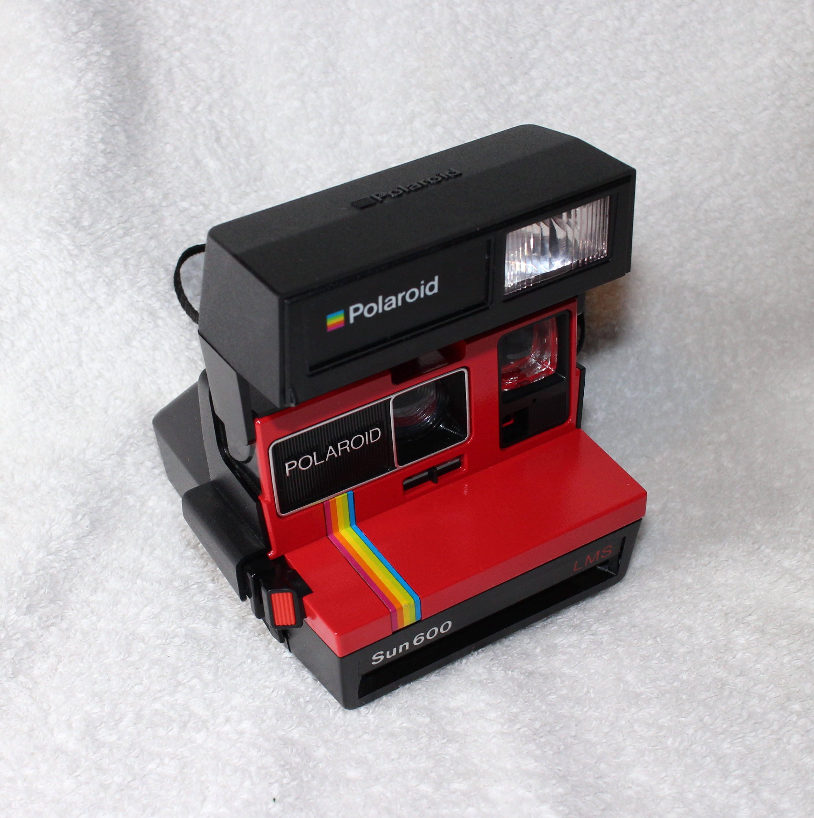 This Polaroid Sun 600 Rainbow Camera takes photos of things at 4 feet or further away, with a nice automatic fill flash. The flash has charging and charged/ready indicators on top of the camera. The power for the flash comes from the battery in the film cartridge so there is no issues with leaking batteries. There is also a second shutter button for taking pictures without the flash.