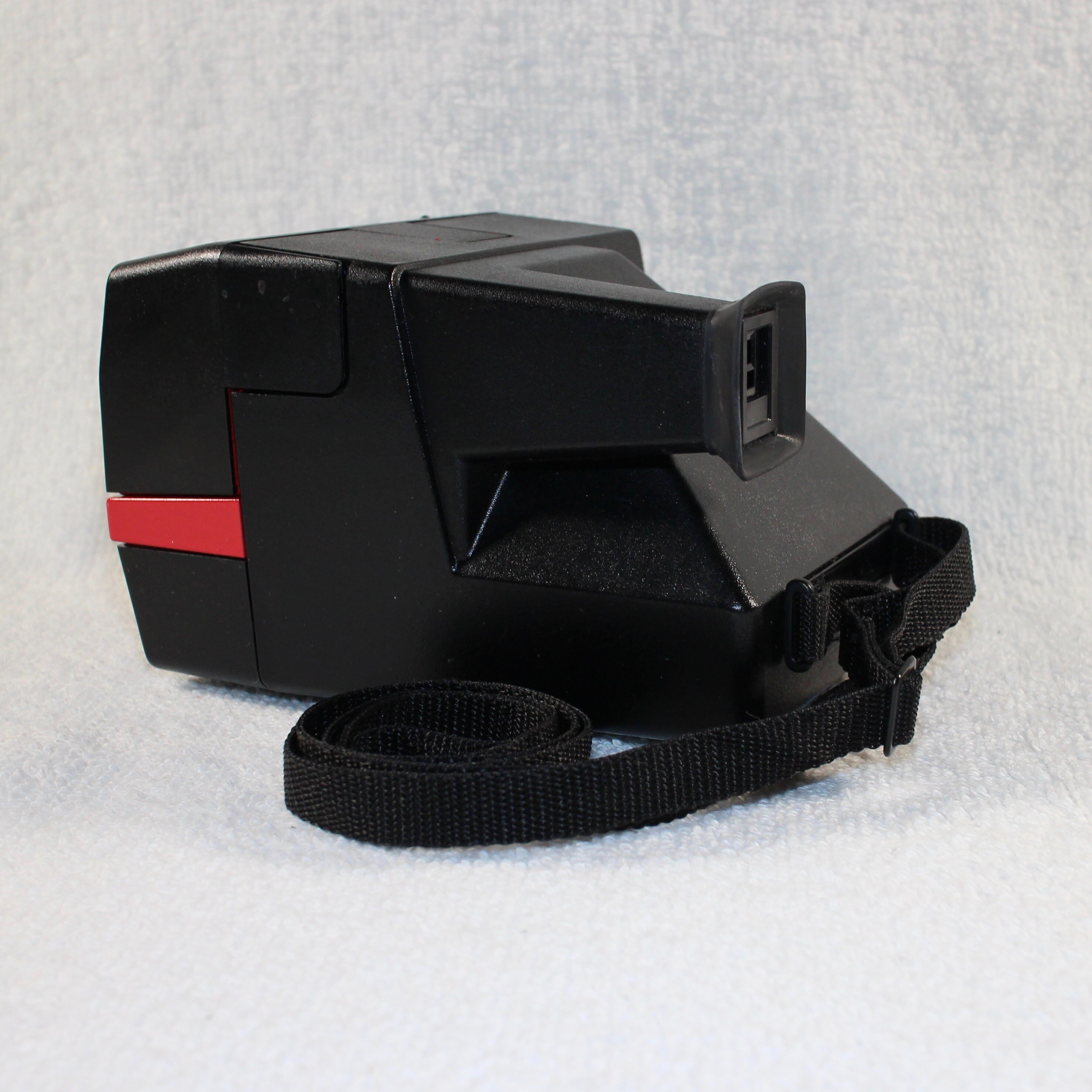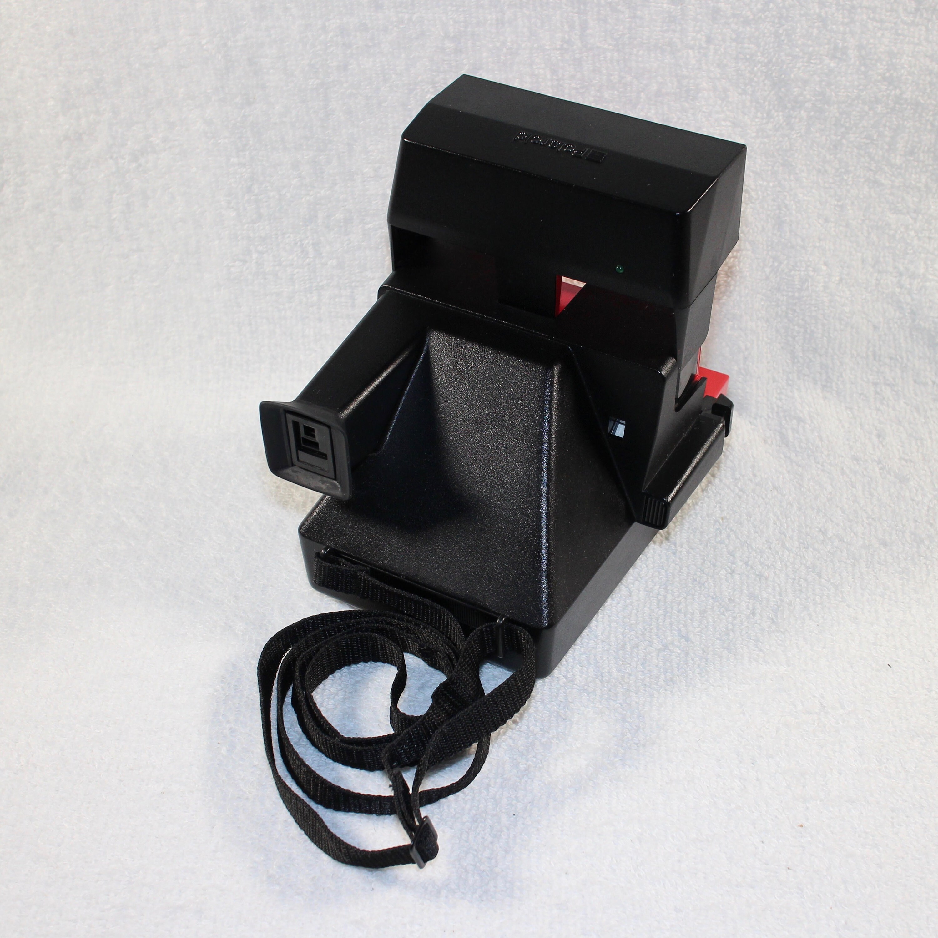 This camera has an original adjustable neck strap, rubber view finder eye piece and working shot counter. I cleaned the rollers, replaced worn internal mechanical components as needed, and cleaned the lenses. There is a slider on the front of the camera to use to get a photo when the background of the photographed area is over bright or over dark.