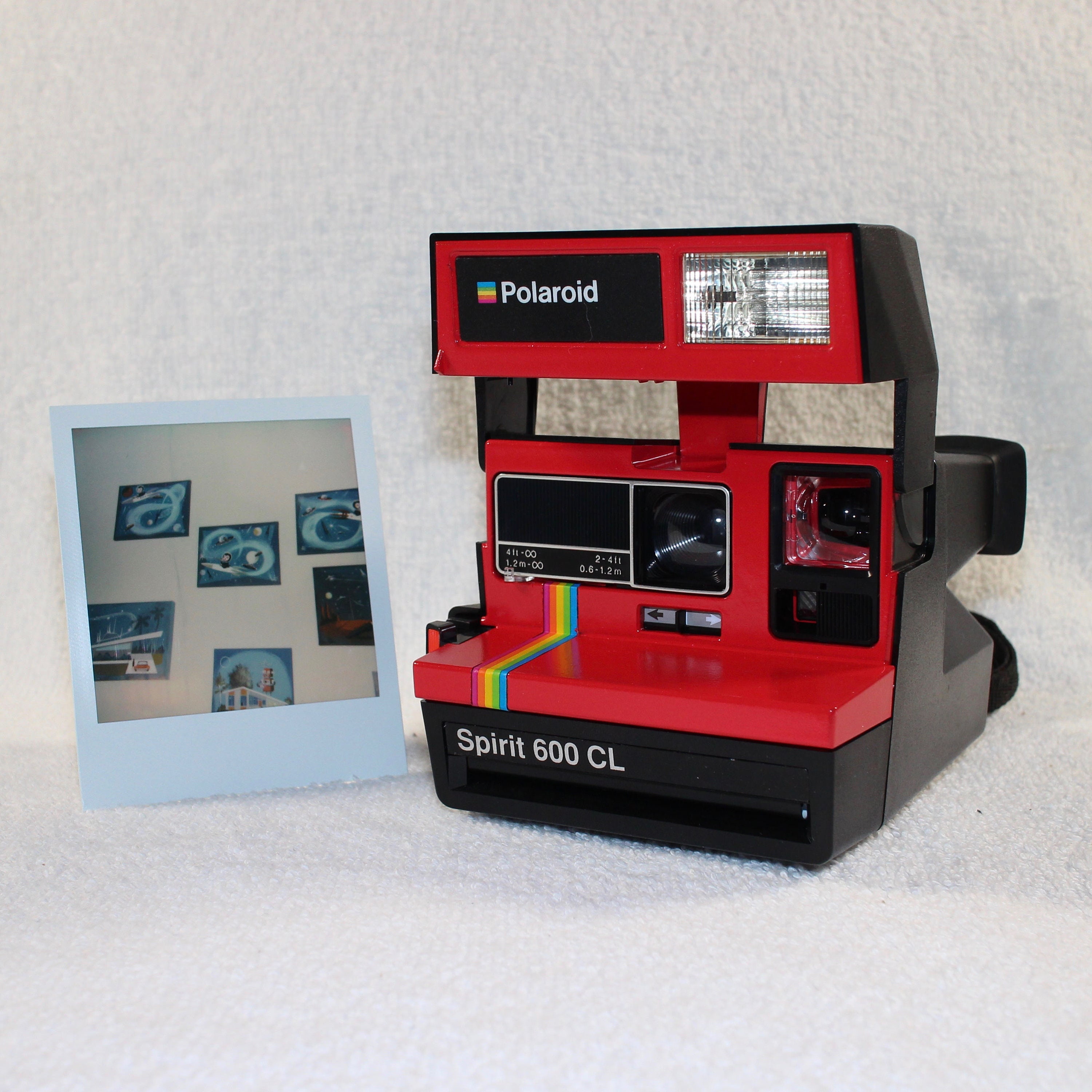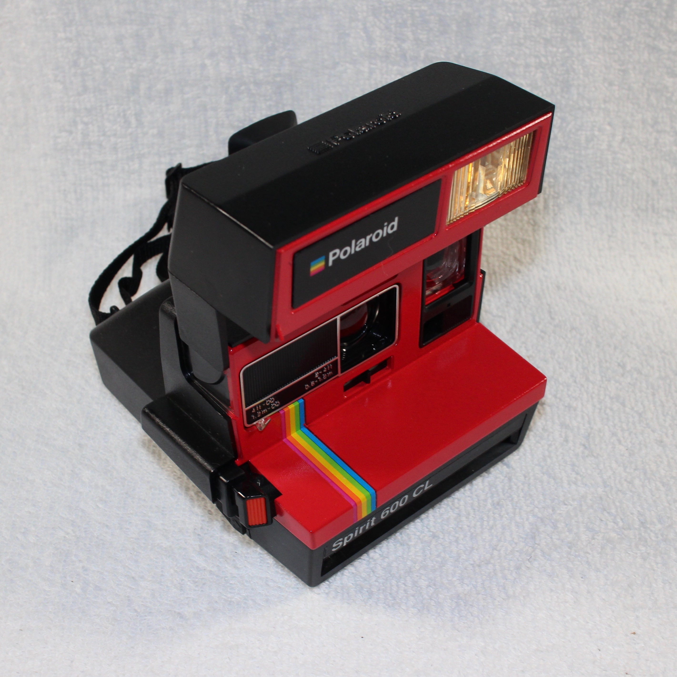 This vintage 'Rainbow' version of the Spirit 600 CL has a built in Close Up lens found in the more recently produced Polaroid cameras. This allows for things to be photographed as close as 2 feet away.